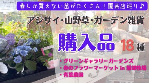 《春の園芸店巡り♪購入品18種》アジサイ・宿根草・山野草・ガーデン雑貨/グリーンギャラリーガーデンズ/春のフラワーマーケット(服部牧場)/青葉農園