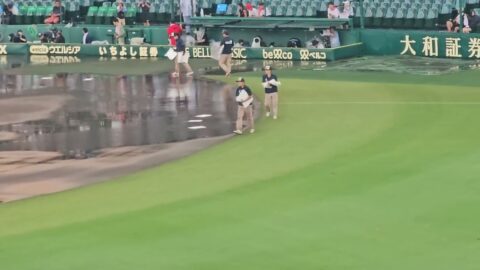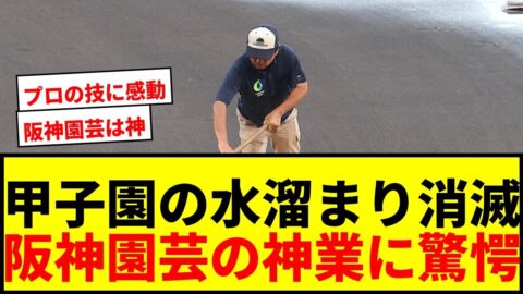 【衝撃】甲子園の特大水溜まりが68分で消滅!阪神園芸の「プロの技」にNHKも驚愕