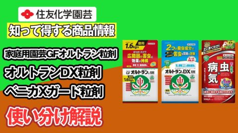 粒剤の使い分け解説~知って得する商品情報(家庭園芸用GFオルトラン粒剤、オルトランDX粒剤、ベニカXガード粒剤)~ガーデンドクターTV110