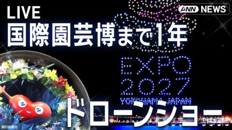 【リプレイ】ドローンショー 「トゥンクトゥンク」「ミャクミャク」光の競演| 国際園芸博覧会まで1年 横浜・みなとみらい【LIVE】(2026年3月5日) ANN/テレ朝